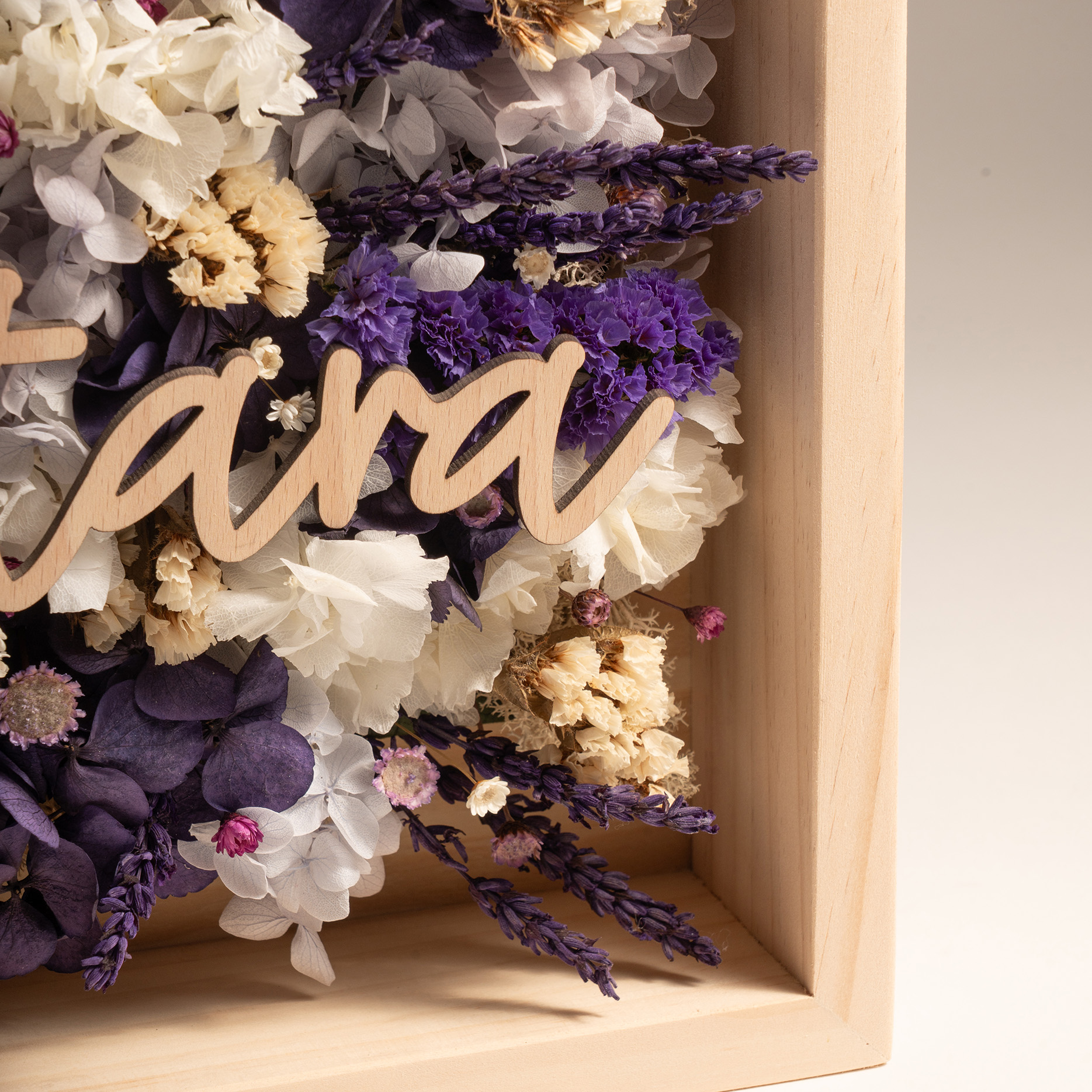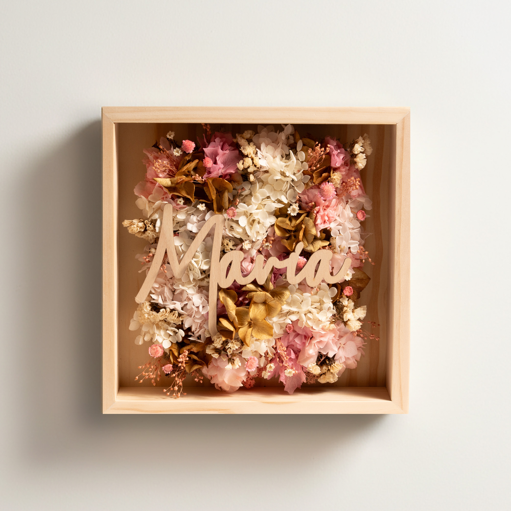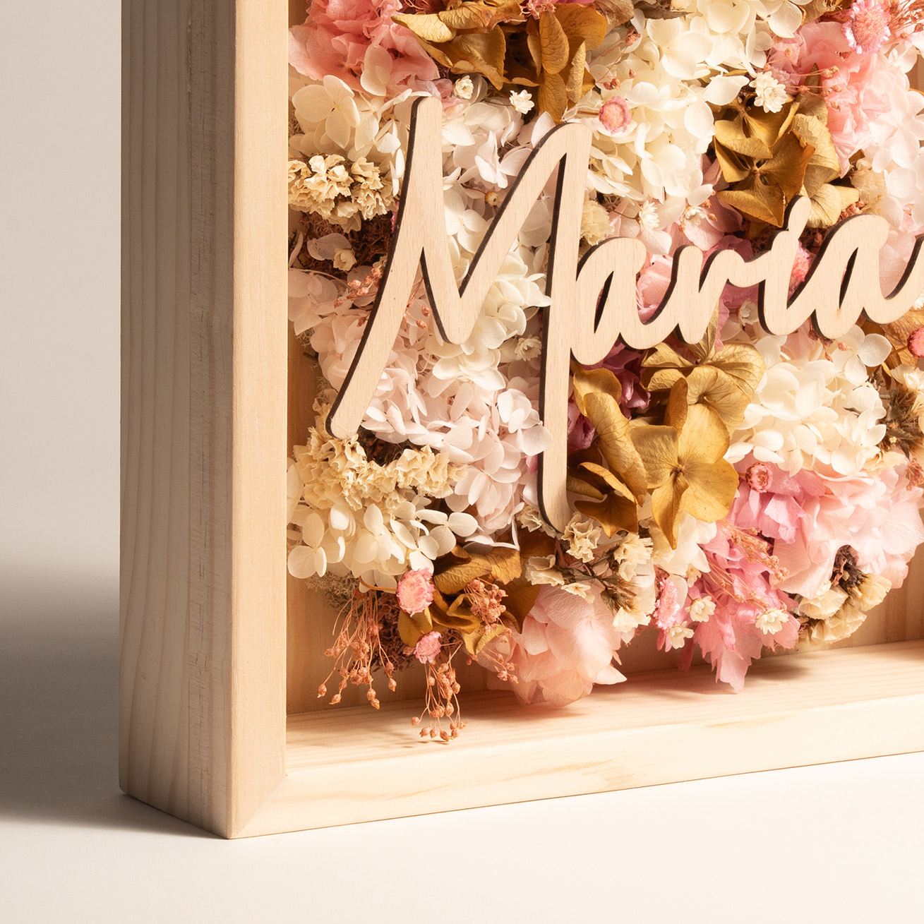 Factae Classic – Cuadro personalizado con flores secas y nombre en madera