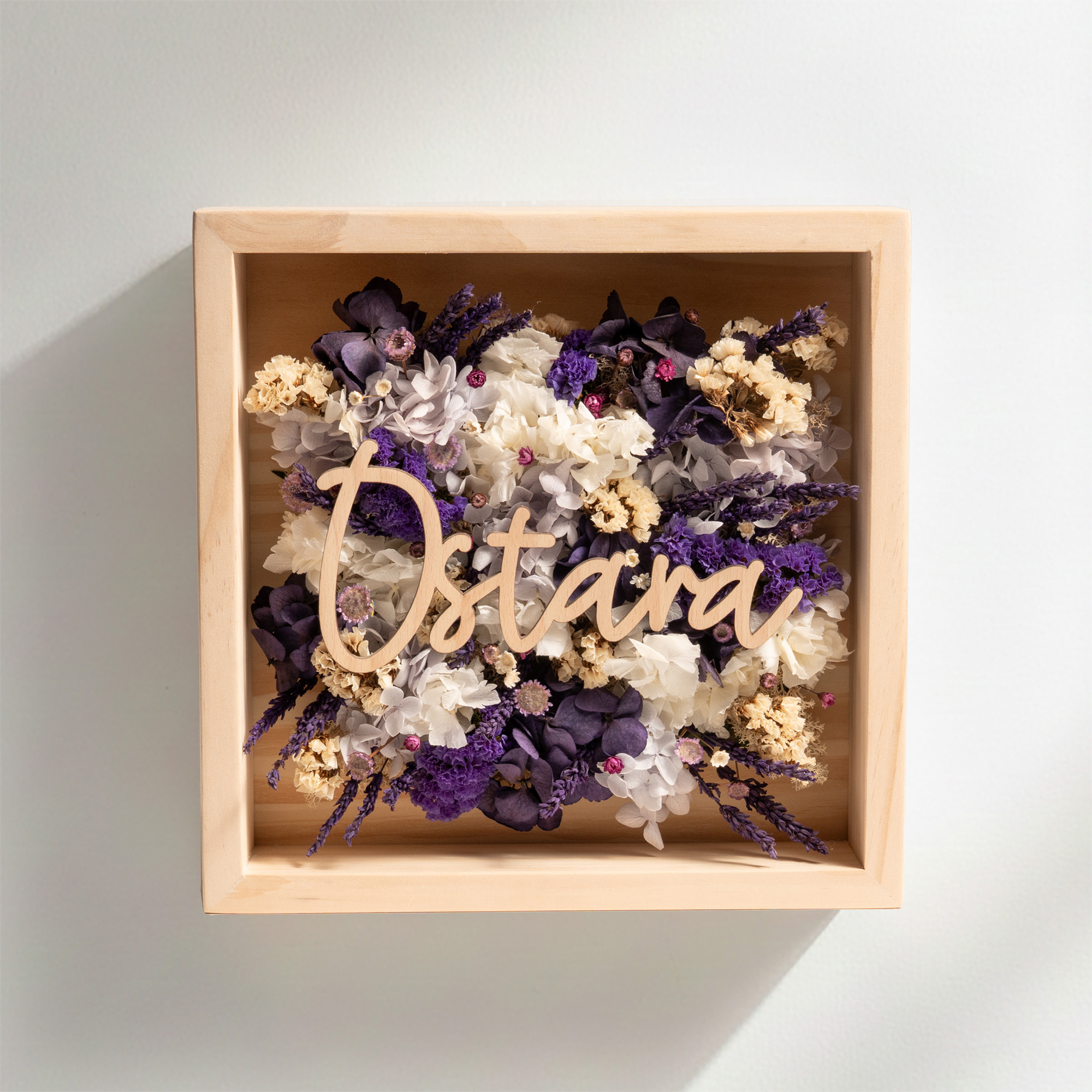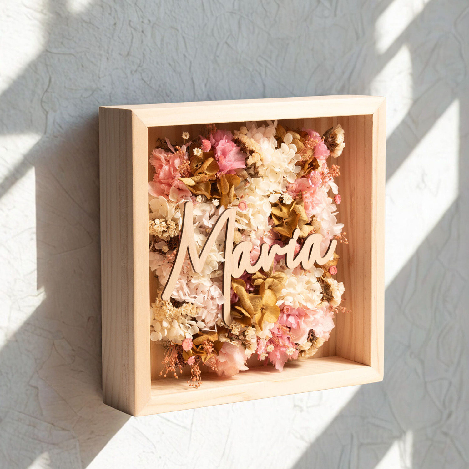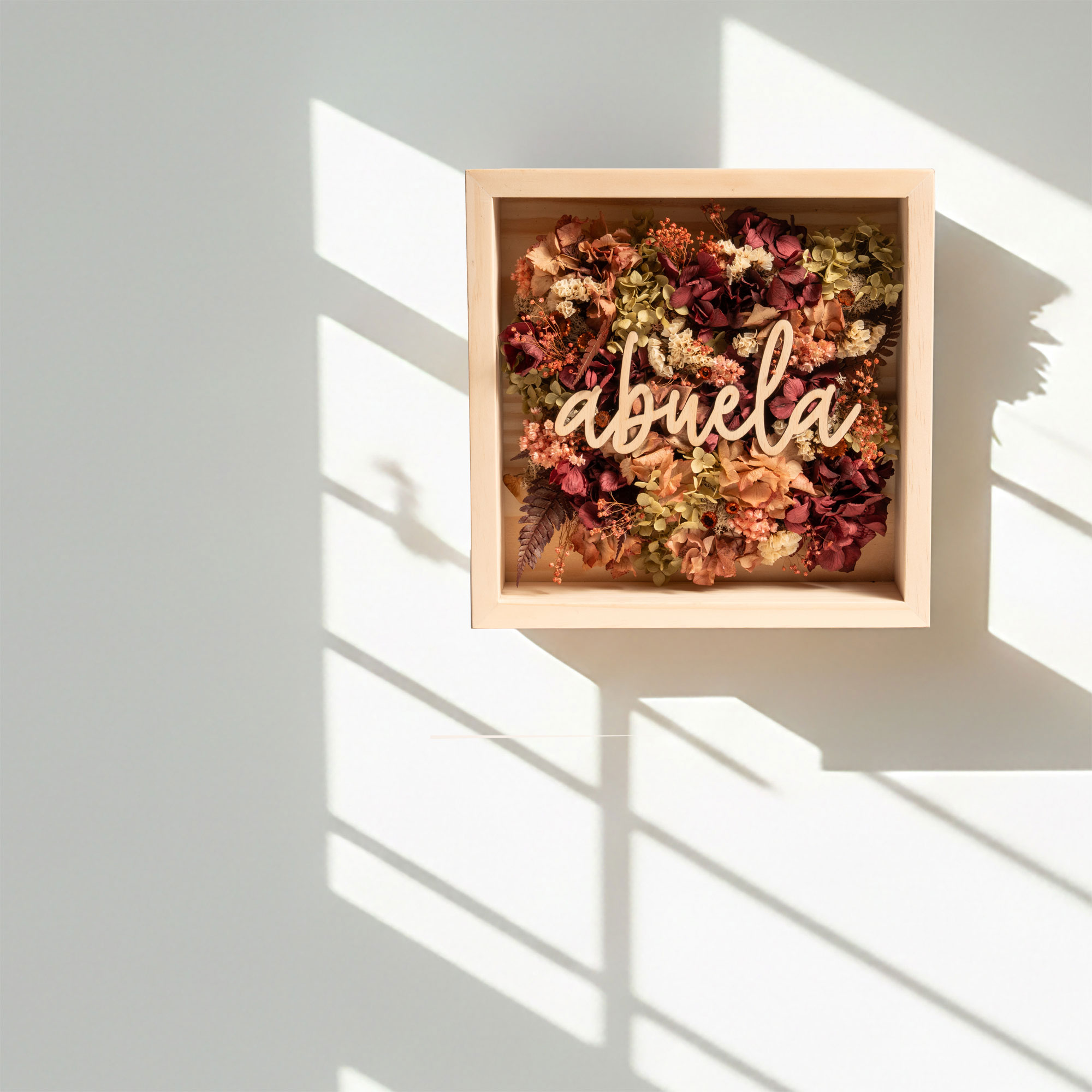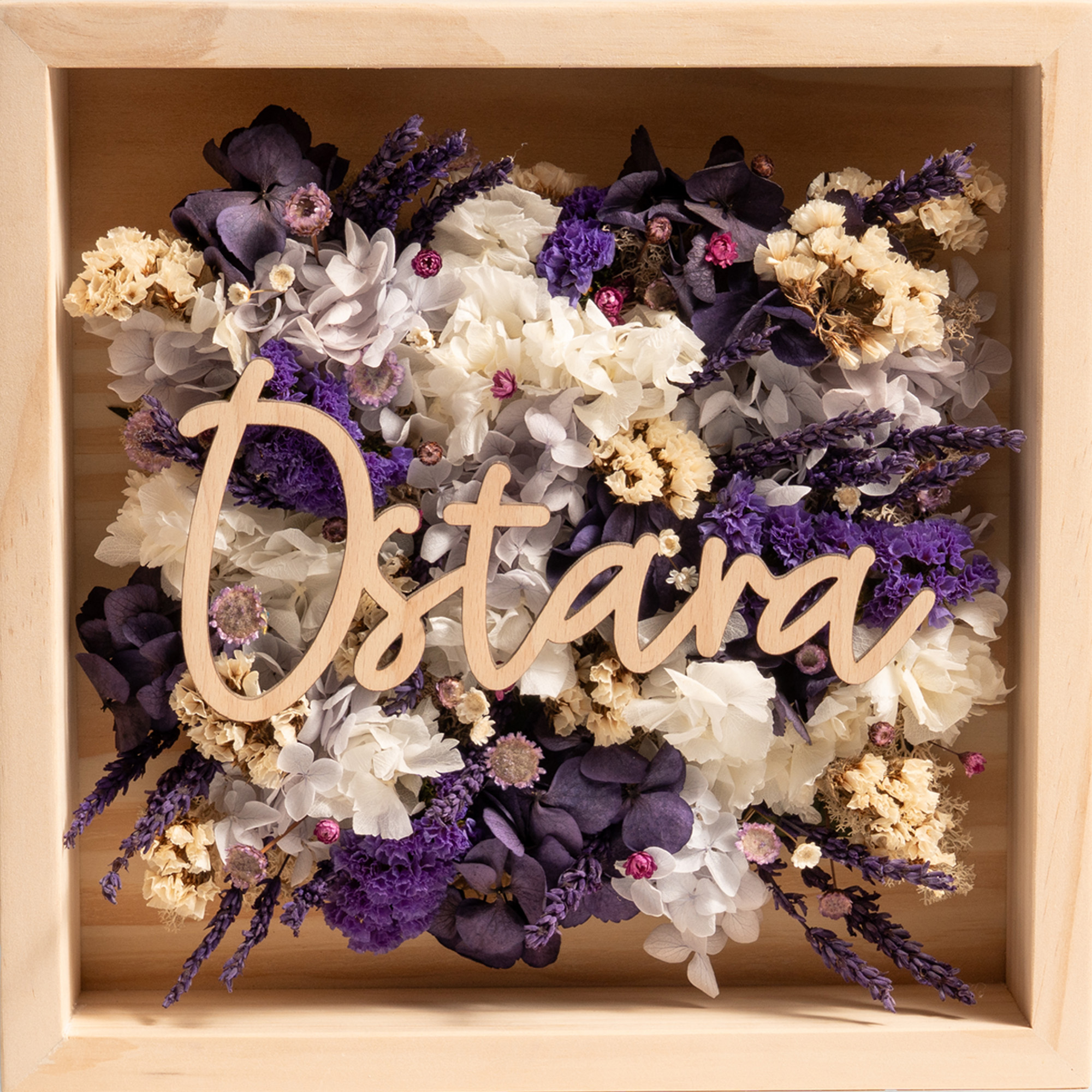 Factae Classic – Cuadro personalizado con flores secas y nombre en madera