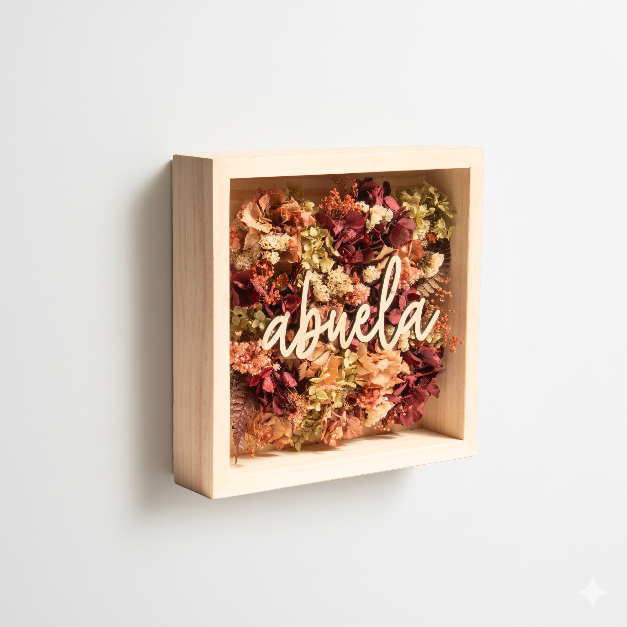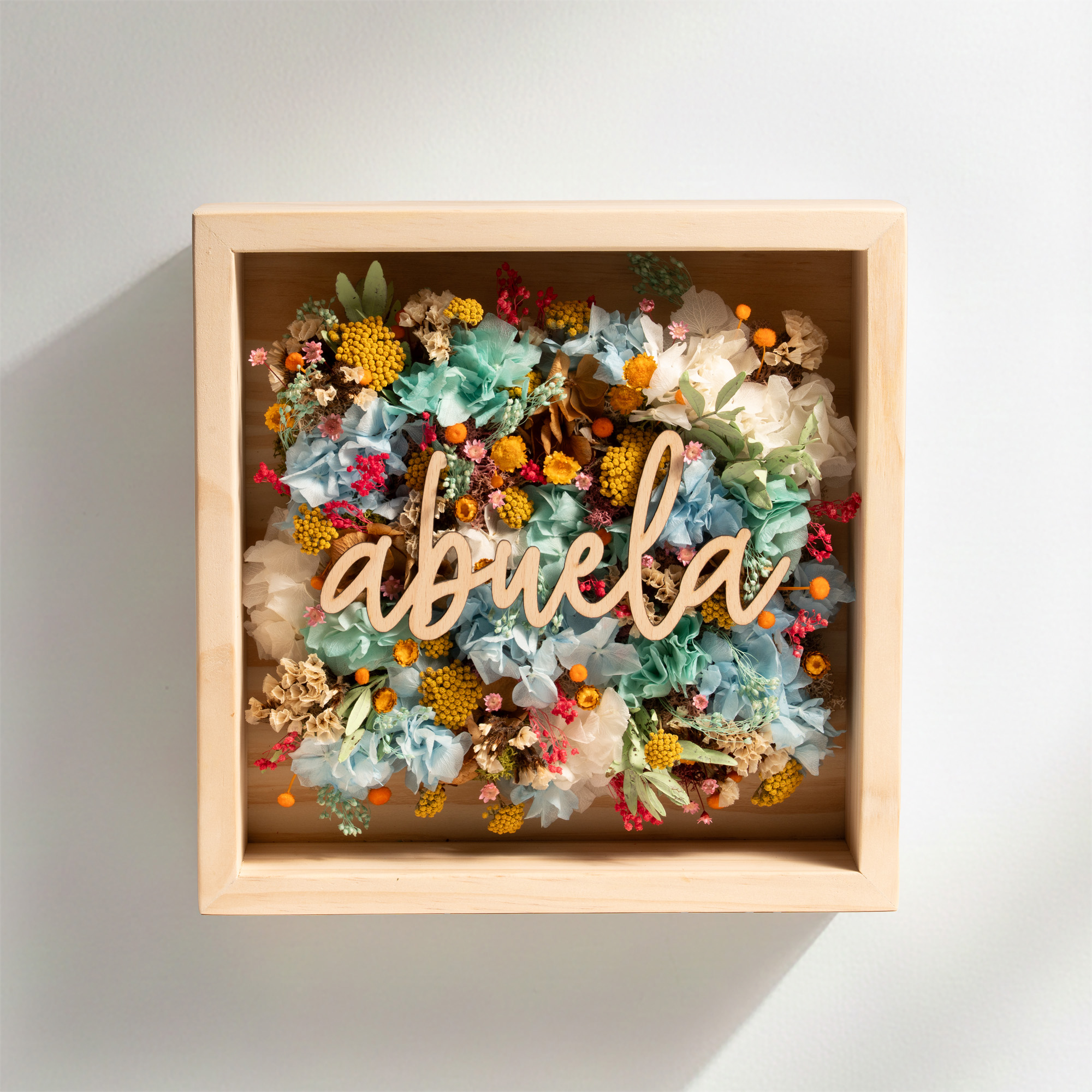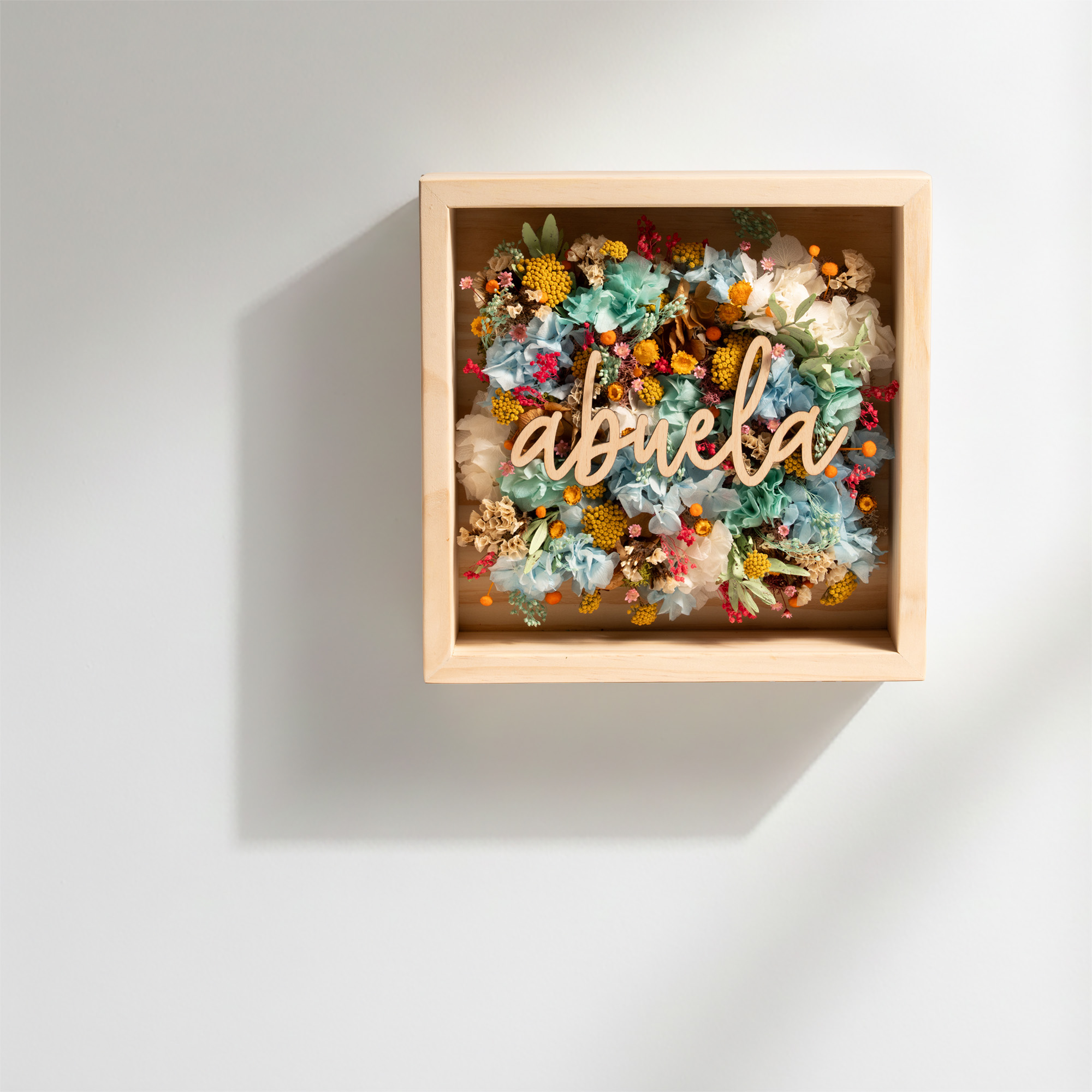 Las flores secas y preservadas utilizadas en cada cuadro pueden variar ligeramente en forma o tonalidad respecto a las imágenes mostradas. Cada pieza es única y está realizada a mano, por lo que forma parte de su valor como objeto artesanal.
